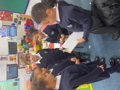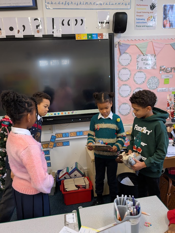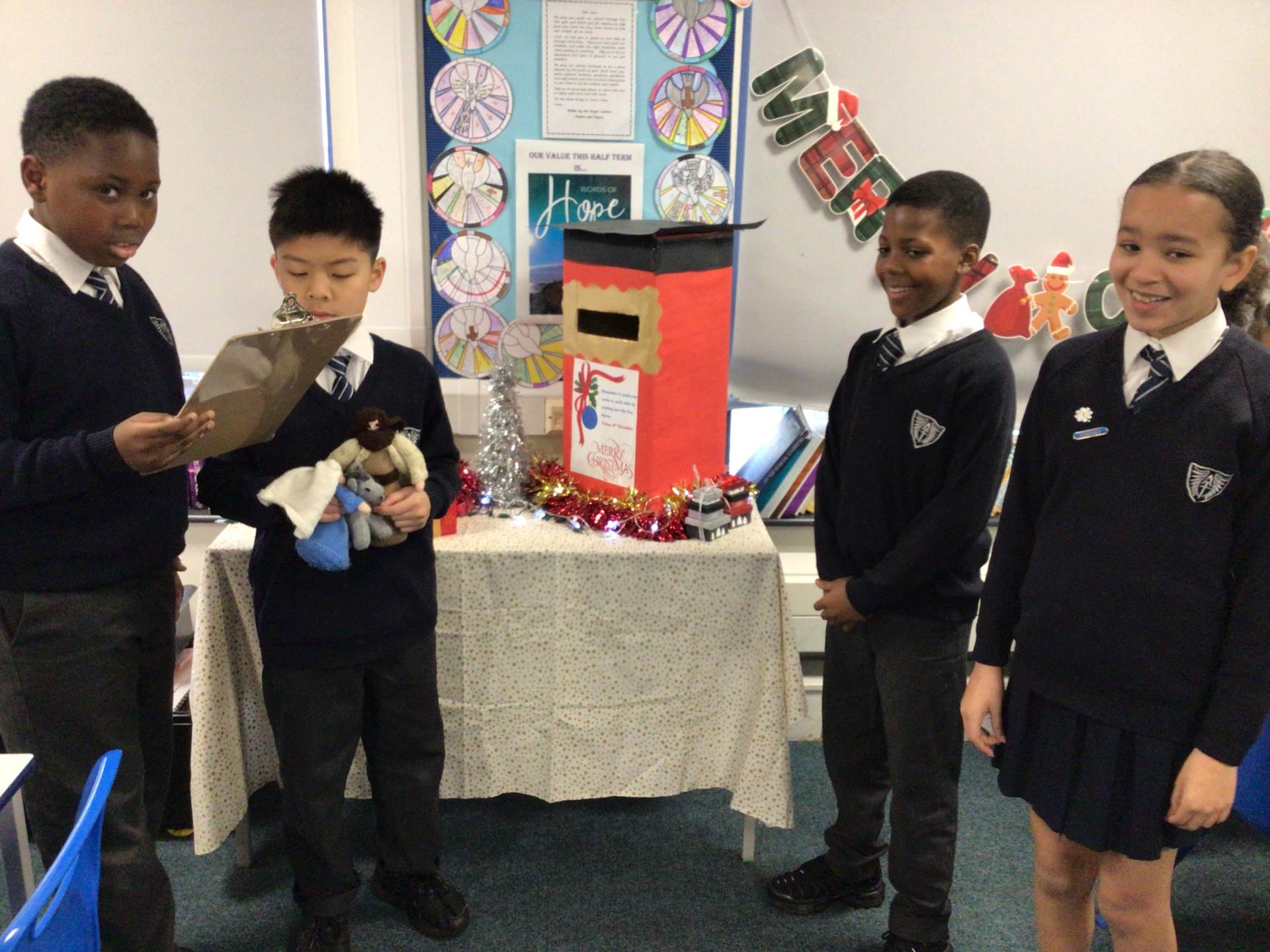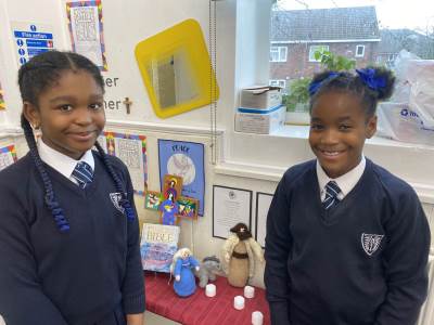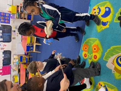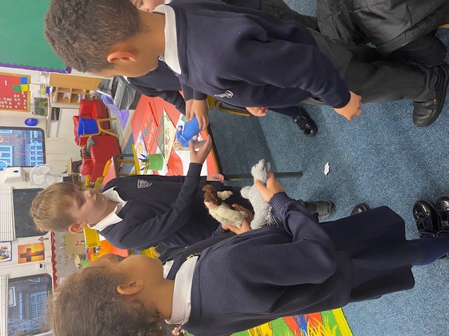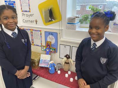 Our visitors are travelling from class to class until they arrive back in Collective Worship. Each time they travel to a new place, the same words are exchanged: