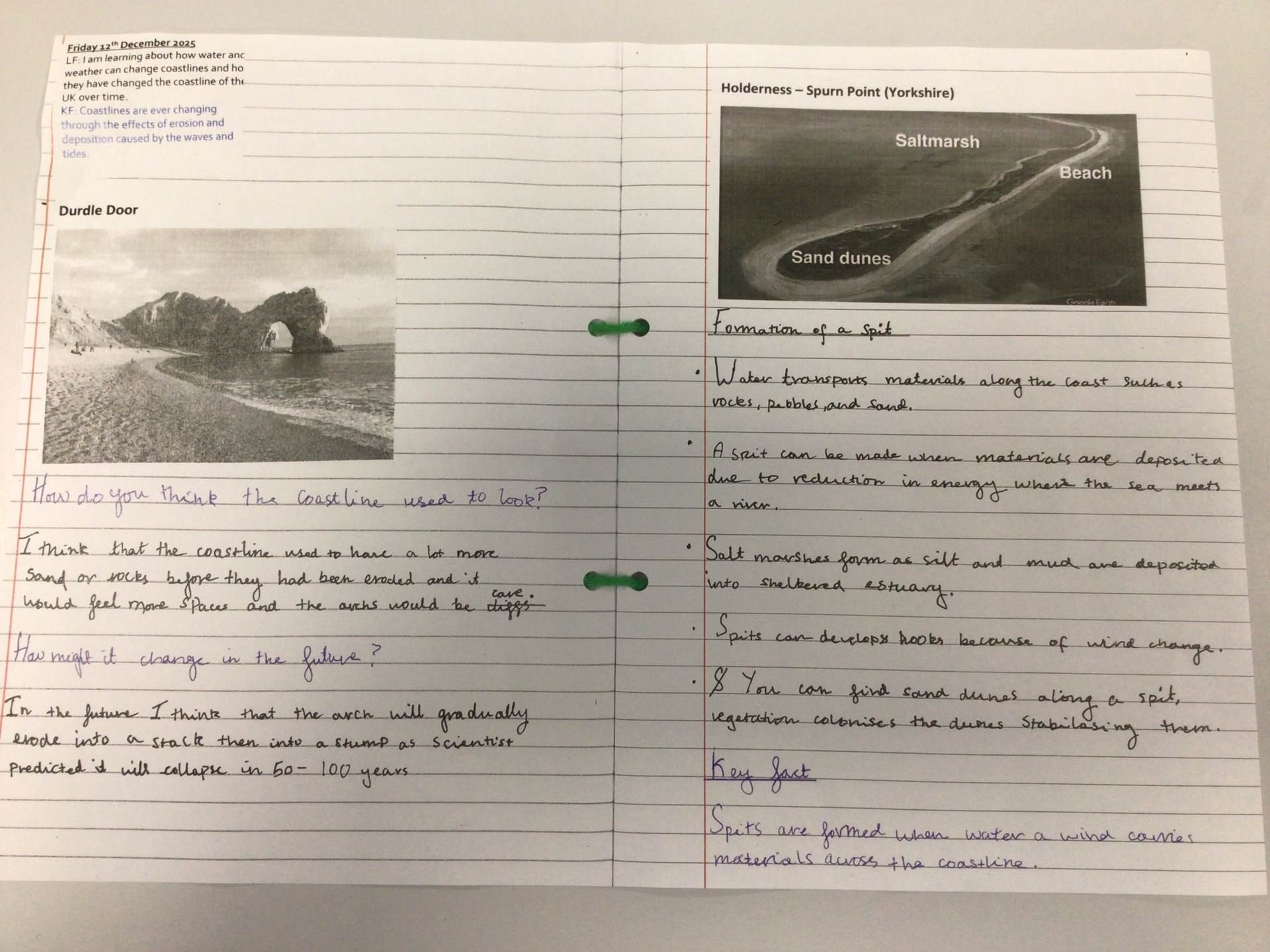 In Year Six, the children learnt about the structure of the United Kingdom and how its shape and geography have changed over thousands of years. The children explored how the landscapes have changed and had a chance to predict the future. They looked at different types of weathering and carried out simple investigations. They identified coastal landforms created by waves such as stacks, stumps, caves, arches, coves, beaches and cliffs.