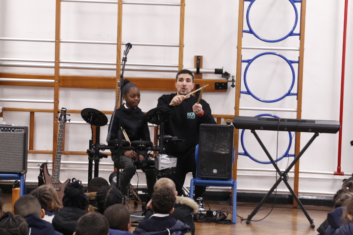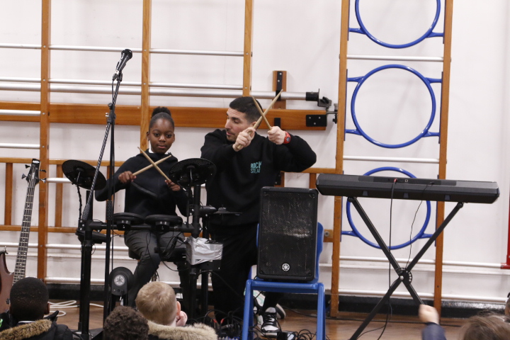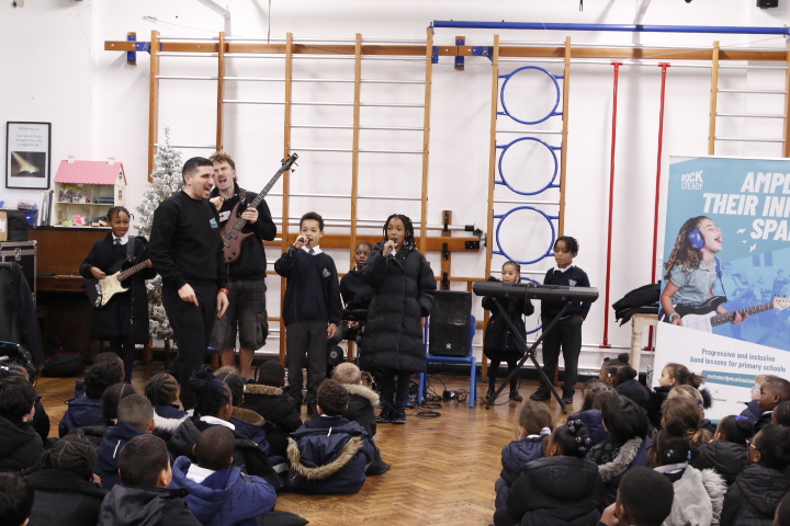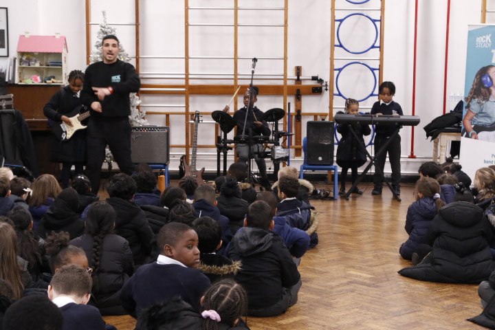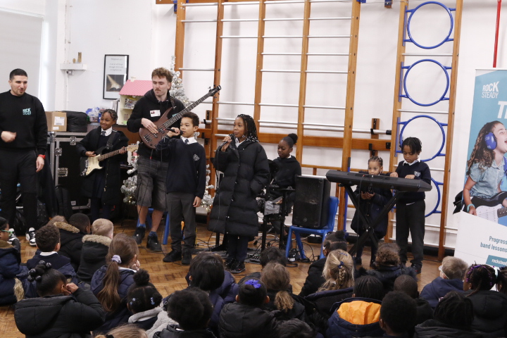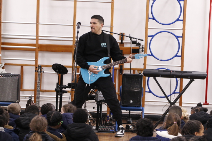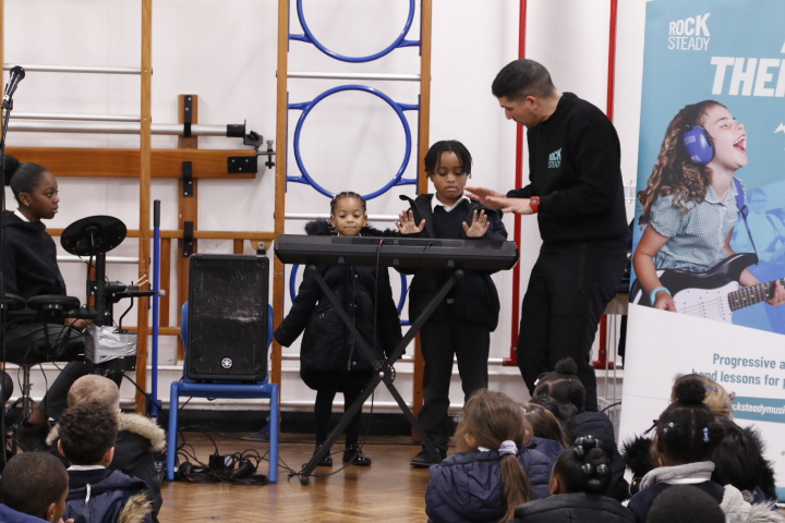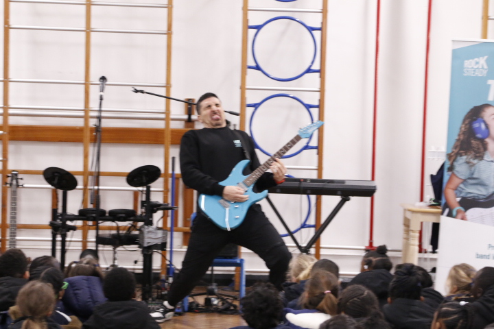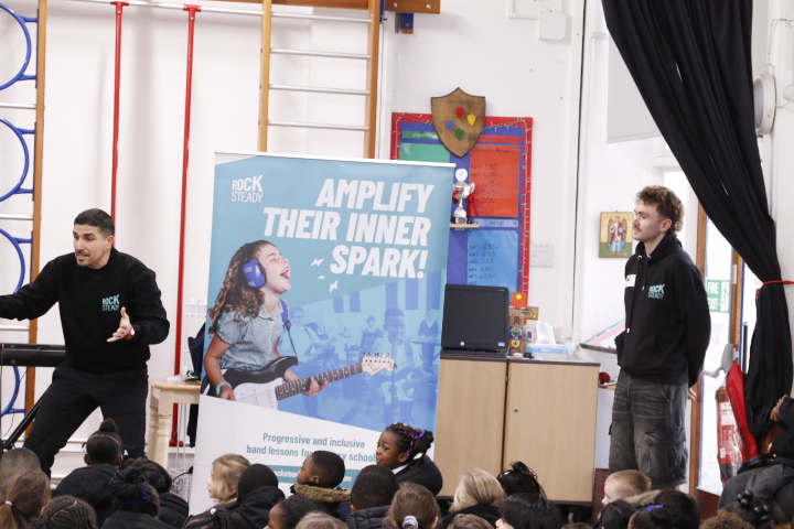 Rocksteady works in partnership with thousands of primary schools across the UK, delivering inclusive band lessons that build children’s self-belief, support wellbeing, and help them reach their full potential back in the classroom. During the assembly, pupils were introduced to the thrill of playing in a band, exploring modern instruments such as drums and electric guitar. The launch was full of energy and enthusiasm, leaving children inspired, motivated, and eager to make music together.