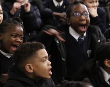 Just look at how enthusiastic the children are - they joined in and rocked the band!