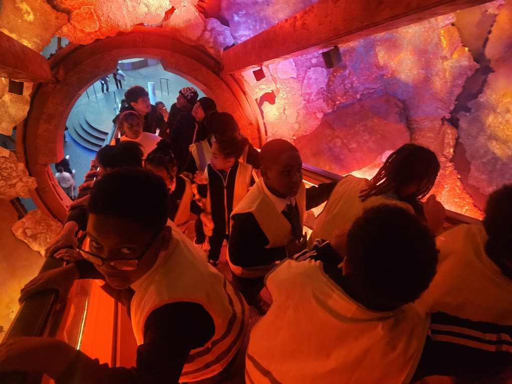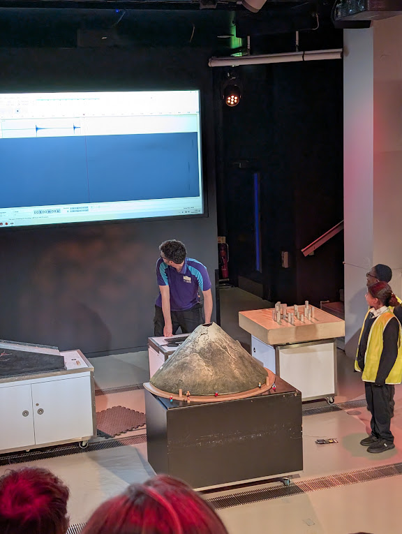 Next, we took part in a brilliant workshop called “Emergency! Earthquakes and Volcanoes”. We learned about how earthquakes are measured and what causes them beneath the Earth’s surface. Some of us even volunteered to create our own “earthquakes” using special equipment so we could measure the vibrations just like real scientists! We helped save a village near an active volcano and are now certified volcano experts according to the Natural History Museum.